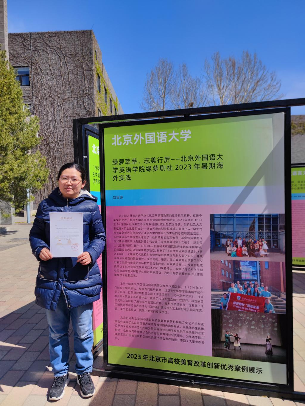 《绿萝莘莘,志美行厉——kaiyun登录中国入口登录绿萝剧社2023年暑期海外实践》展板