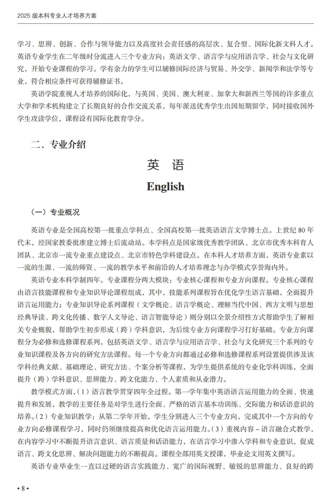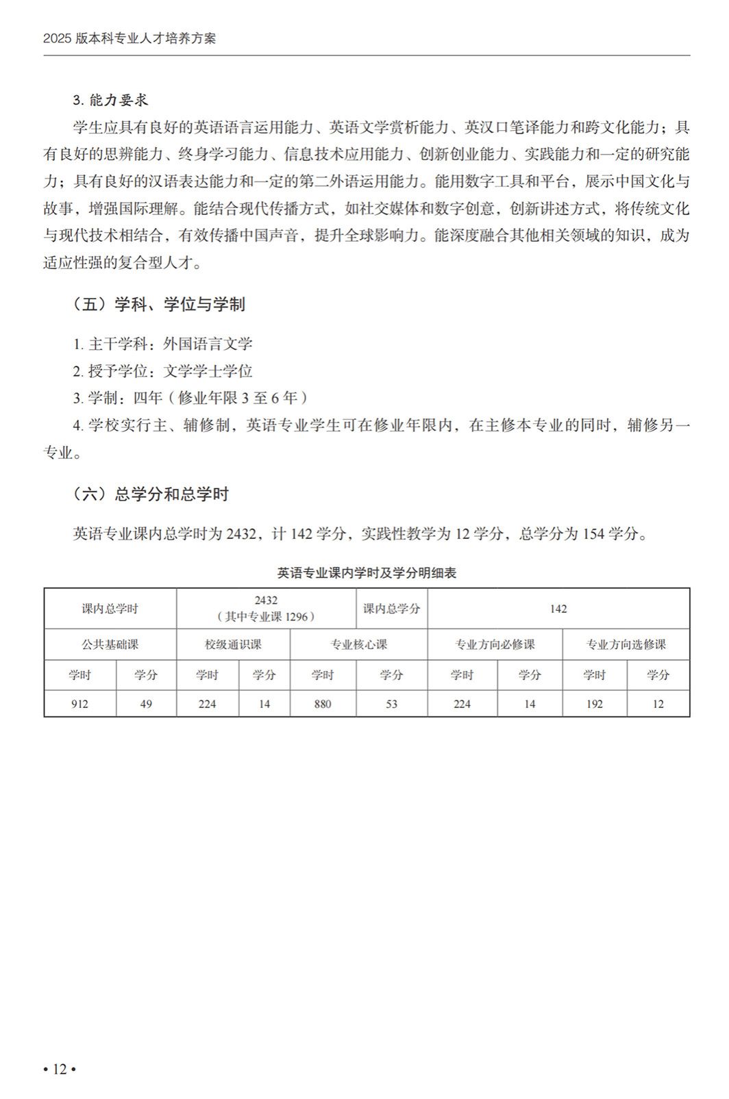 翻译(外事外交高级翻译)专业本科培养方案(2025)
