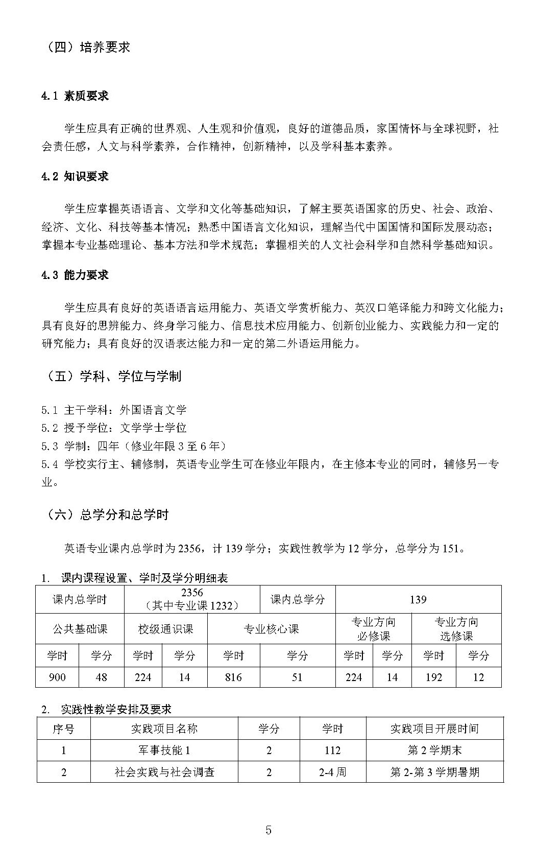 kaiyun登录中国入口登录英语专业本科培养方案(2024)