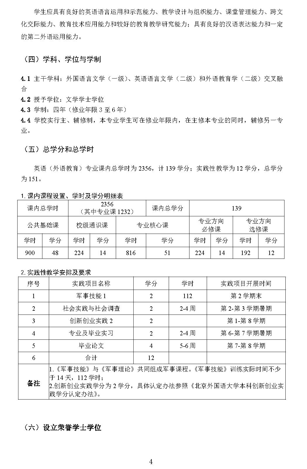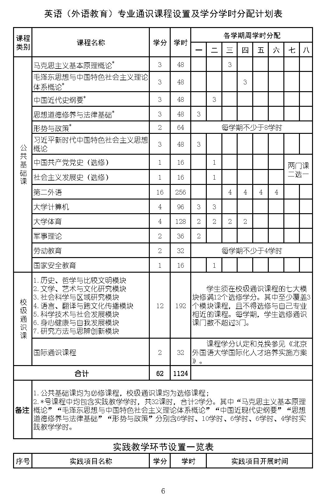 kaiyun登录中国入口登录英语(外语教育)专业本科培养方案(2024)