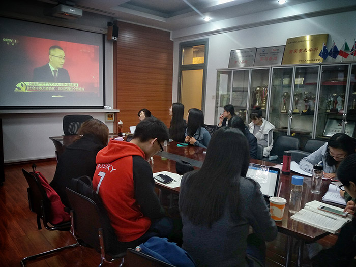 会后,在场同学表达了十九大对党章的修改和新一届中央领导集体的坚决拥护——如2016级MTI英语笔译2班徐莹表示:“党的十九大通过了关于《中国共产党章程(修正案)》的决议,一致同意将习近平新时代中国特色社会主义思想写入党章,这是中国共产党历史上第17次修改党章,作为党内的根本大法,党章在中国共产党的政治生活中扮演了极为重要的角色。虽然党章具有稳定性和连续性,但形势在变化、实践在发展,指导思想必须要跟得上形势的变化,才能起到引领的作用。这次党章的修改充分体现了中国共产党的先进性和前瞻性。作为一名普通在校研究生,我坚决拥护十九大对党章的修改。”