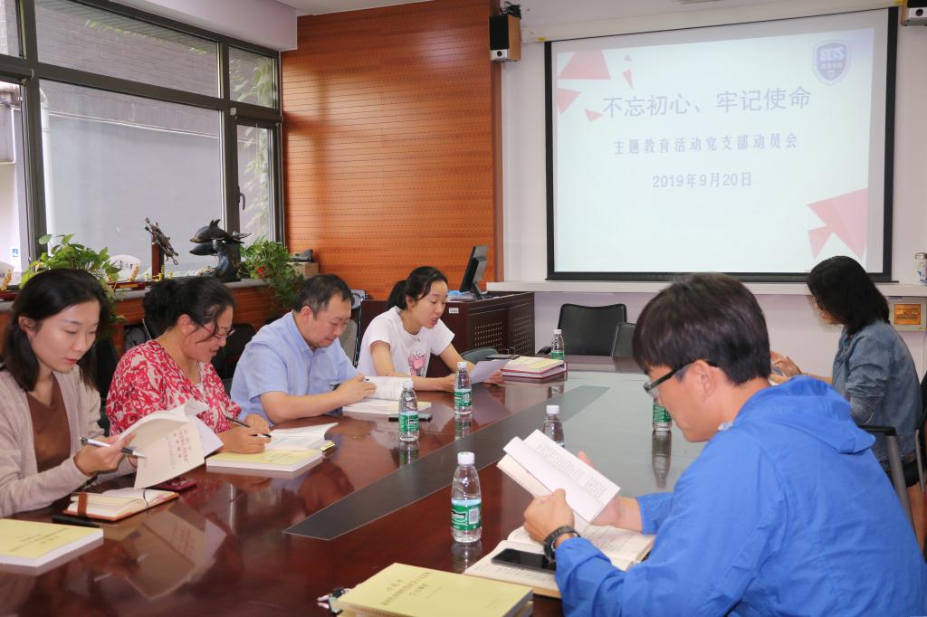 党支部书记王欣扬首先传达了教育部开展“不忘初心、牢记使命”主题教育动员视频会和学校党委召开的动员部署会精神。在庆祝新中国成立70周年之际,她要求支部党员要按照学校党委和学院党总支工作部署和要求,深入学习贯彻习近平总书记系列重要讲话精神,充分认识“不忘初心、牢记使命”主题教育的重大意义,加强推进党员学习交流建设活动,结合自身工作,做一个敢担当、勇创新、解难题,做表率的优秀共产党员。