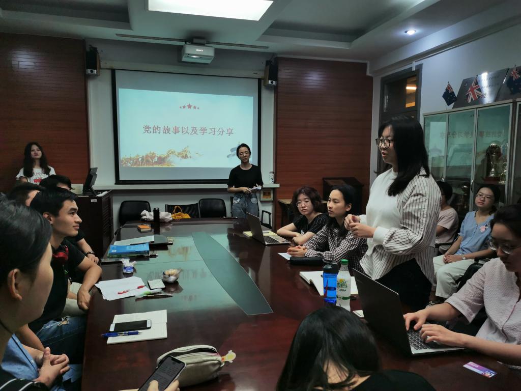 在《学习纲要》学习分享环节,与会党员和入党积极分子以5到6人为一组,由党员组织组员对《学习纲要》的内容进行探讨和交流。在交流结束后,刘香月和陈钇钧两位党员就刚刚探讨的“文化自信”话题再次发表了自己的感想。罗振令在总结中再次鼓励大家将党性融入到学习生活与实践中来,结合外语学习与交流者的身份发扬并创新中华文化光明灿烂的未来。