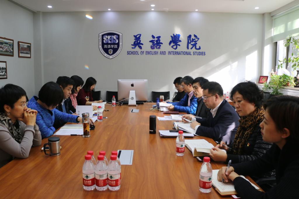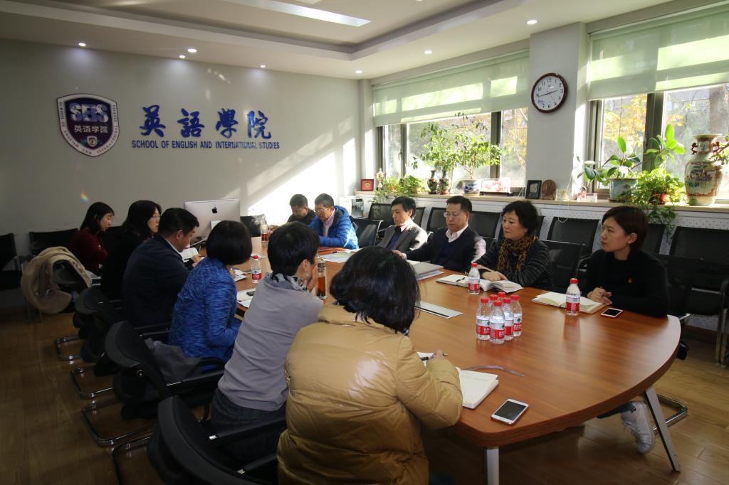 党总支书记路兴首先从宏观上就中央召开十九届四中全会专题研究“坚持中国特色社会主义制度,推进国家治理体系和治理能力现代化”这一重大议题的总体目标及重要意义做了说明。随后,他围绕学习《光明日报》自11月1日以来连续刊发的十几篇评论员文章及十九届四中全会公报提出的十三个“坚持和完善”,结合学院工作实际谈了自己的认识。他认为,十九届四中全会《决定》中的很多精神,对完善新时代大学治理体系具有很强的指导意义。从学校层面讲,坚持和完善中国特色现代大学制度,推进大学治理体系、提升大学治理能力是建设“中国特色,世界一流外国语大学”的重要保证。从学院层面看,在学校党委的领导下,需要进一步完善决策机制和各项规章制度,充分发挥党总支掌握政策,把握方向的功能,在现有党政联席会的基础上,完善和落实学院党组织工作会议机制,充分发挥党总支位委员和教师党支部书记的作用;发挥党政联席会在学院的最高决策机构作用;发挥学术委员会、学位委员会、工会等各类组织的作用,进一步健全民主集中制。同时,我们还要注意广泛征求师生员工的意见和建议,形成广泛参与共同治理学院的局面,提升决策的科学性,促进学院平稳较快发展。