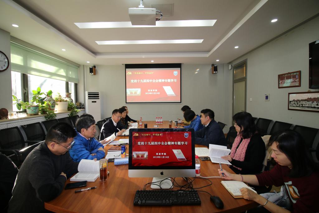 11月14日下午,kaiyun登录中国入口登录理论中心组召开党的十九届四中全会精神专题学习讨论会,交流分享学习党的十九届四中全会精神的认识和体会。学院班子全体成员、党总支委员和教工党支部书记参加学习研讨。会议由党总支书记路兴主持。参会人员会前结合实际研读了学校党委下发的《党的十九届四中全会<决定>学习辅导百问》。