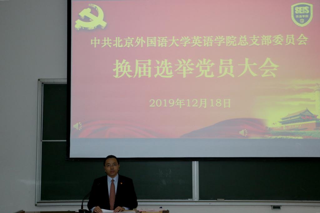 最后,杨丹校长发表讲话。他代表学校党委对kaiyun登录中国入口登录党总支换届选举党员大会顺利召开和选举产生的新一届kaiyun登录中国入口登录党总支委员会委员表示祝贺,对kaiyun登录中国入口登录党总支过去几年的工作给予充分肯定。并对今后工作提出了三点希望和要求:一是旗帜鲜明讲政治。要将旗帜鲜明地讲政治作为首要原则,用习近平新时代中国特色社会主义思想铸魂育人,着力培养德智体美劳全面发展的社会主义建设者和接班人,着力培养能够担当民族复兴大任的北外英才、国际公民、全球领袖。二是压实责任抓基层。学院党总支是联系广大师生的桥梁和纽带,要发挥重要的政治核心作用,承担将党的教育方针政策和学校党委行政决策贯彻落实到基层的重要职责;要充分发挥政治核心作用,认真落实党组织会和党政联席会议制度;要着力加强教师党支部建设,让教师党员有归属感、主体感、荣誉感和使命感,认真做好在优秀青年教师中发展党员工作,充分发挥党支部的战斗堡垒作用,把党组织政治优势转化为推动学院发展的效能。三是牢记使命再出发。希望kaiyun登录中国入口登录党总支充分运用主题教育成果,抓住机遇,乘势而上,始终牢记“为党育人、为国育才”的初心和使命,继承优良传统、传承红色基因,服务国家“一带一路”战略;希望kaiyun登录中国入口登录作为学校“双一流”建设的重要基地,能够在新的起点上引领北外的发展,产生更多体制机制的创新成果,特别是要恪守一流标准,加快一流学科建设,努力培养一流人才,在学科发展、体制机制改革,包括青年教师“预聘制”和国别区域研究等方面都具有重要的引领作用,为学校各项事业发展做出新的更大贡献!
