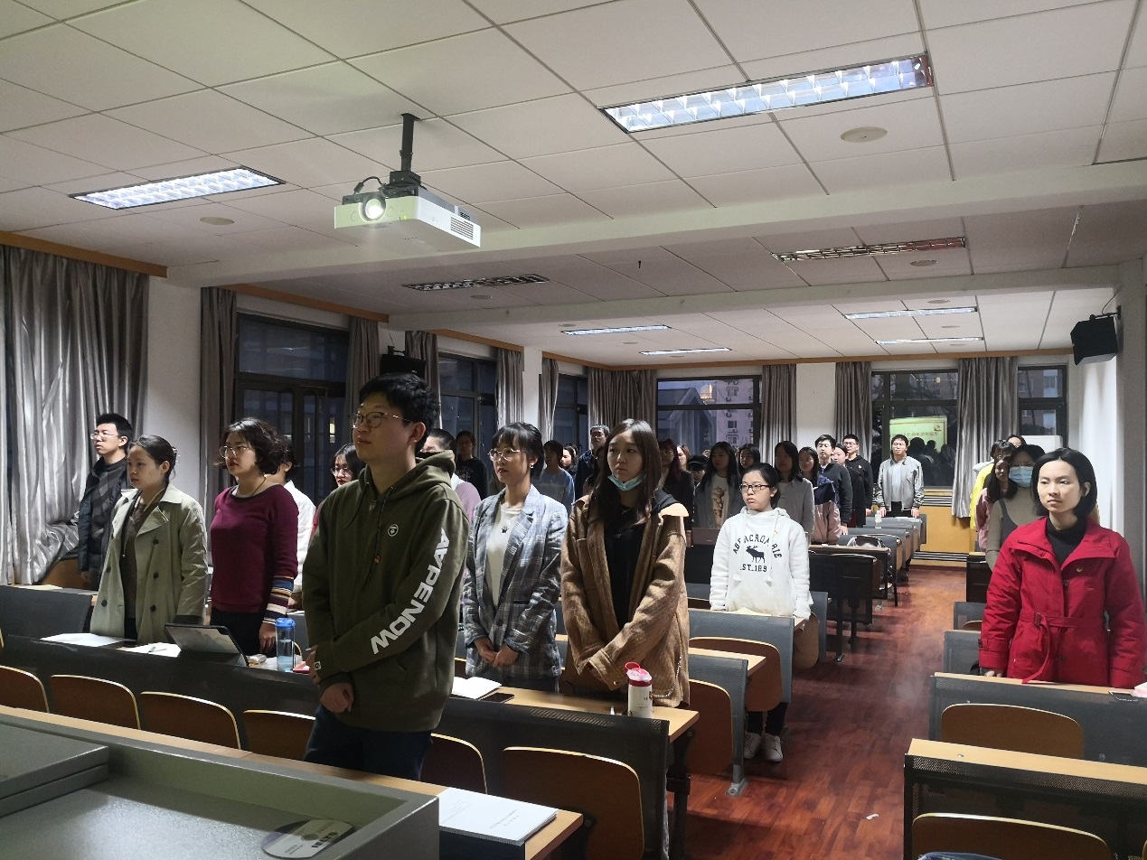 会上,同志们通过一则视频短片,回顾了中国共产党百年奋斗历程中入党誓词的变迁。随后在孙琳同志的带领下,16位预备党员面向党旗庄严宣誓。之后同志们对于本学期支部的党员发展工作进行了讨论。