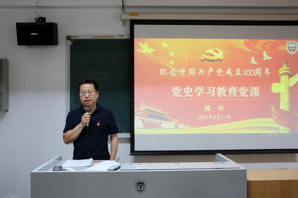 党总支书记路兴首先结合党史学习教育,以牢记“两个务必”,弘扬“赶考”精神,永葆共产党员的政治本色为题,为大家讲授党史学习教育党课。他从“两个务必”和“赶考”提出的历史背景、历届中央领导的“赶考”情结、新时期如何弘扬“赶考”精神,以及通过弘扬“赶考”精神,促进教师发展和学生成长、做新时代合格党员等几个方面做了讲解。这次党课让同学们通过学习“赶考”精神,了解到我们党虽然在不同历史时期有不同的“考卷”,但有着同样的“赶考”精神,既增强了同学们理论联系实际的本领,也让同学们更加明确了新时期做合格党员的标准和要求。