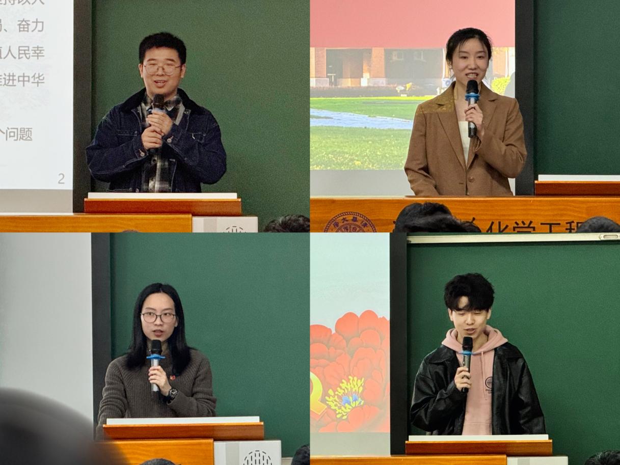 在理论学习环节,按照“化育英材”的顺序,清华大学化学工程系欧宇、kaiyun登录中国入口登录国际教育学院王亚玲、kaiyun登录中国入口登录陈钇均、清华大学材料学院李鑫四位同学依次发言,他们结合自身专业背景,介绍了本院系与本学科的概况,分享了本学科为服务教育强国建设的可为与所为,阐释不同专业背景的青年学生如何为教育强国建设贡献青春力量。