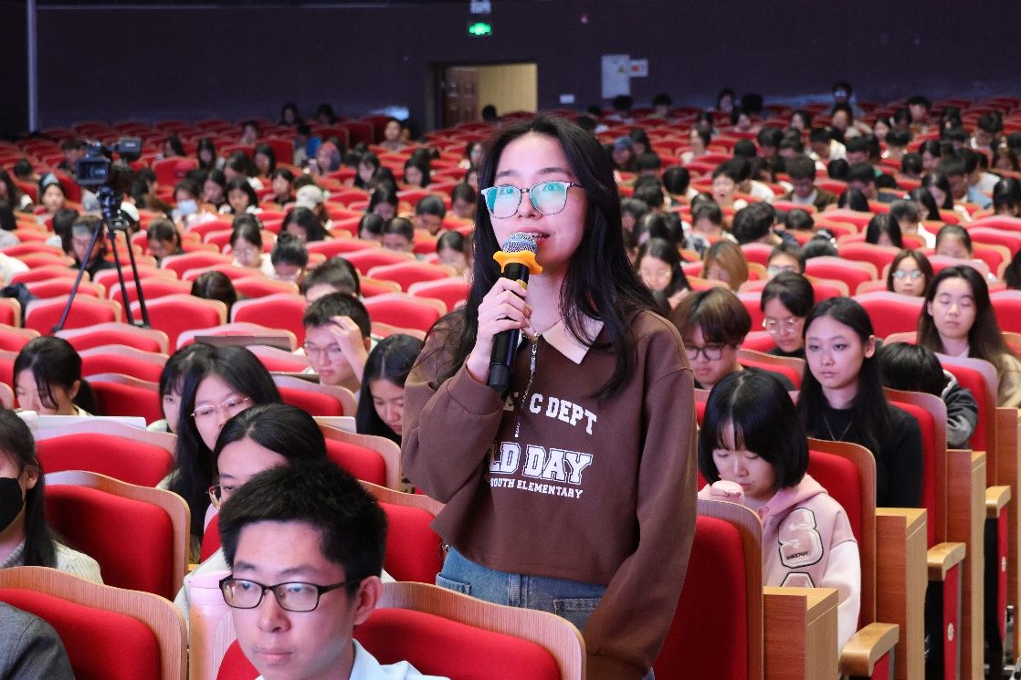 杨硕老师以“时代的召唤”为主线,将一个个故事与在座的诸位学子联系在一起。“如果祖国需要你,你会为祖国奉献多久?”如此震撼人心的发问,使得同学们反观于己,陷入深思,再次深刻领会了爱国奉献的伟大精神,更加坚定了为国奋斗、砥砺前行的决心。最后,杨硕老师用科学家精神来鼓励各位学子——服务人民,敢为人先;求真务实,无私奉献;不怕困难 脚踏实地;团结协作,奖掖后学。瞻仰榜样丰碑,勇担时代重任,宣讲结束后,现场同学们争相发表感言,抒发自己的心得感悟。