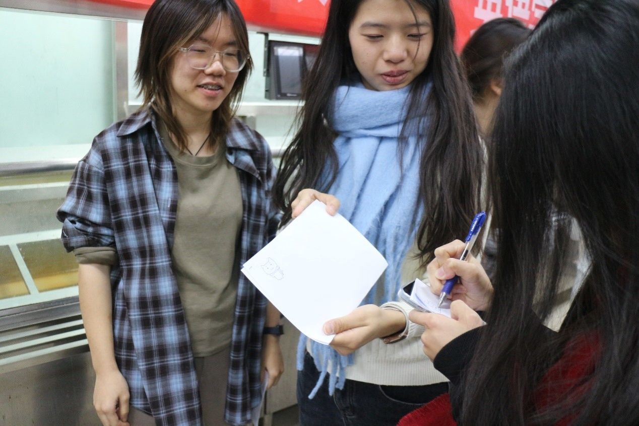 饺子下锅,在等待的同时,游戏“冬至画心”欢乐开启。大家用简单的线条勾勒出一幅幅充满趣味与想象力的画,现场气氛紧张而又欢乐,同学们积极参与,展现出对传统文化的热爱。