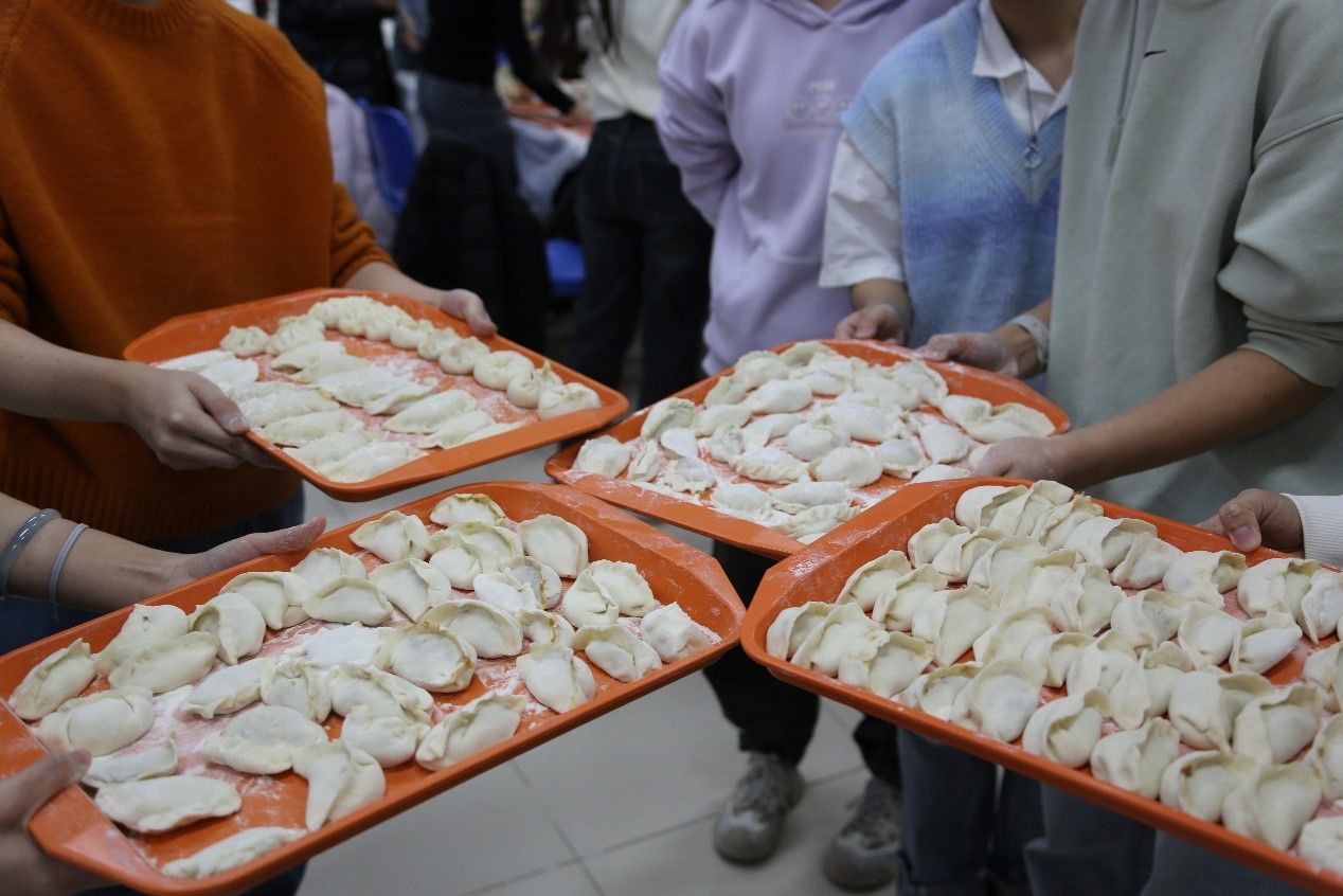 活动伊始,kaiyun登录中国入口登录党总支书记殷悦老师发表了诚挚的致辞,并为同学们送上了温暖的冬至祝福,点燃了现场欢乐的氛围。在kaiyun登录中国入口登录党总支书记殷悦老师的细心指导下,同学们一边包饺子,一边分享着各自家乡的过节习俗,现场其乐融融、笑语不断。大家齐心协力,分工明确:有的同学负责擀饺子皮,有的同学专注于包饺子,还有同学精心地将包好的饺子摆放整齐。不一会儿,一排排形态各异的饺子就呈现在眼前。