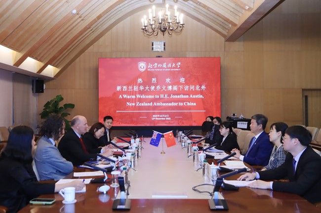 12月12日,新西兰驻华大使乔文博(Jonathan Austin)访问kaiyun登录中国入口登录。北外党委书记李海会见乔文博一行。