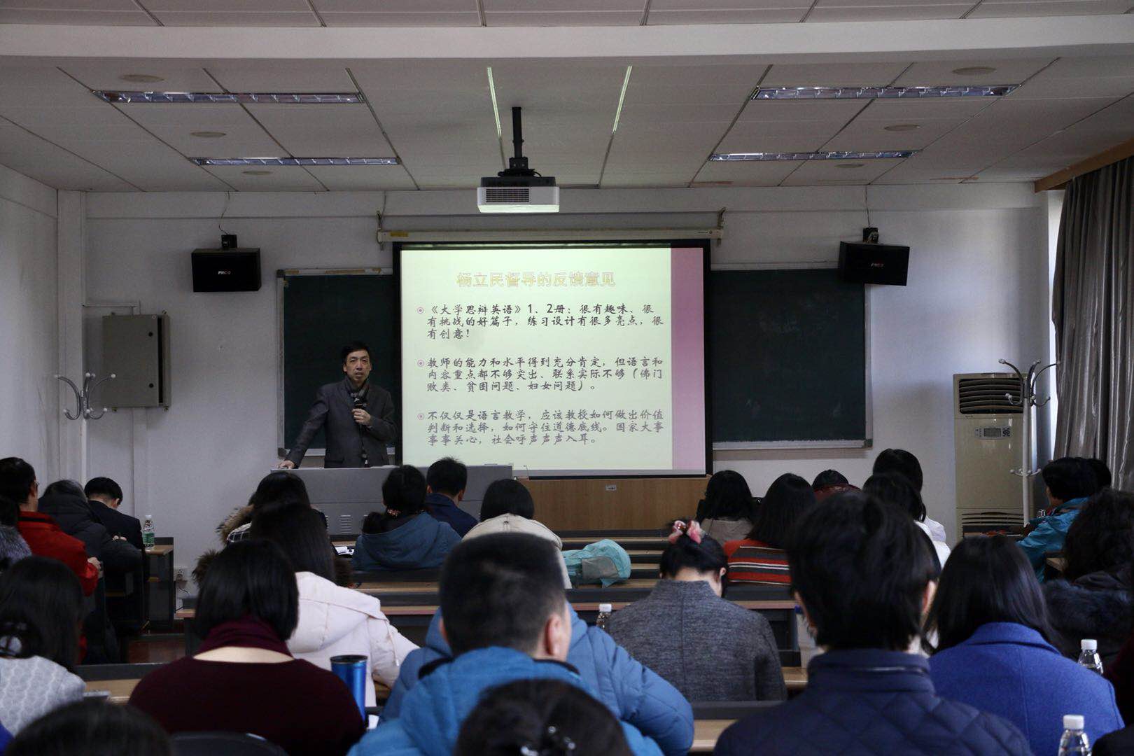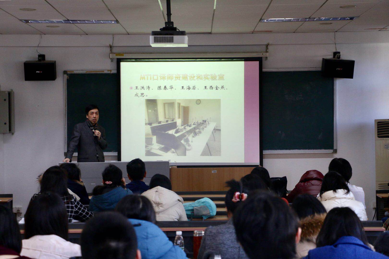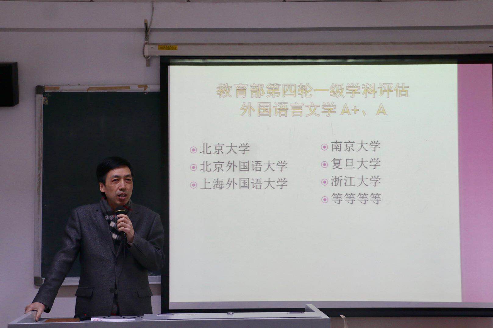 ——会上,张剑院长对新学期工作进行了部署。教学工作方面,首先提出我院教师应坚持追求卓越,做好高层次人才培养工作;本学期要充分利用教育教学改革专项经费,继续开展各辅导中心、俱乐部等相关工作,建设好翻转课堂、微课及“特色示范课”,抓好本科、研究生毕业论文指导工作,MTI口译实验室已建成,要大力提升MTI口译培养质量。科研工作方面,通报本学期相关十三五重大规划项目、即将出版的书籍、学术期刊、集刊等,并介绍了本学期将组织开展的各大会议,另外,提倡全院老师积极参加申报科研项目。国际合作方面,学院本学期将开展中国文学暑期班,建设南太平洋中心,也将继续推动相关合作项目的进程。师资队伍建设方面,通报了我院人事变化情况,也将继续做好2018年招聘工作,包括非通用语种的建设工作,同时,也将积极推荐申报校级本科优秀教学、教学新秀奖及“中青年卓越人才”。最后,张剑院长对全院老师致以深切的祝愿,希望大家能够平衡好工作与生活,在积极工作的同时,也要健康地生活。