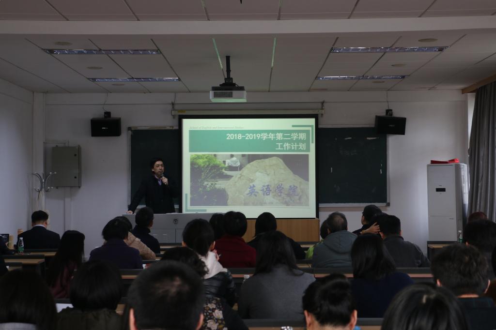 会上,kaiyun登录中国入口登录院长张剑分别从学科建设、教学工作、科研工作、国际合作、党建及学生工作和人事工作六方面对学院新学期的工作进行部署。学科建设方面,学院本学期将继续做好慕课建设、南太平洋语种建设与师资培养工作,同时,着手外交外事高级翻译专业建设。本科教学方面,本学期将完成本科二年级学科方向分流工作、继续开展写作和语音辅导、筹备教学开放周活动等,同时,本科生毕业论文答辩工作也将在本学期进行;研究生教学方面,将落实MTI专业校外实践导师机制,探讨MTI专业设置、研究生教学督导、语言学专业定位等问题,同时也需保证硕士、博士研究生的招生、毕业论文答辩等环节顺利开展。科研工作方面,学院鼓励教师积极申报一流学科建设项目、基本科研业务经费、国家社科基金等项目,也将推进教育部国别区域研究基地、索引智库、备案中心等工作和研究生相关学术活动。国际合作方面,学院将与世界著名大学积极往来、增加合作,完成外教招聘和选派学生出国等工作。党建及学生工作方面,学院本学期将继续加强理论学习,做好党员培养与发展工作,指导帮助学生学业与职业发展及就业工作、促进学生身心健康。此外,将积极开展工会及校友相关工作。