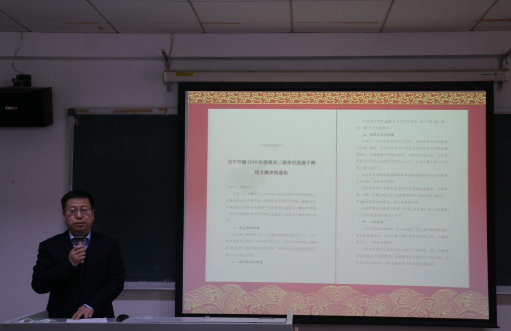 会上,还根据学校党委组织部工作做部署安排,组织在职在编教师从“德、能、勤、绩、廉”五个方面对学院处级干部2018年全年工作做了民主测评。