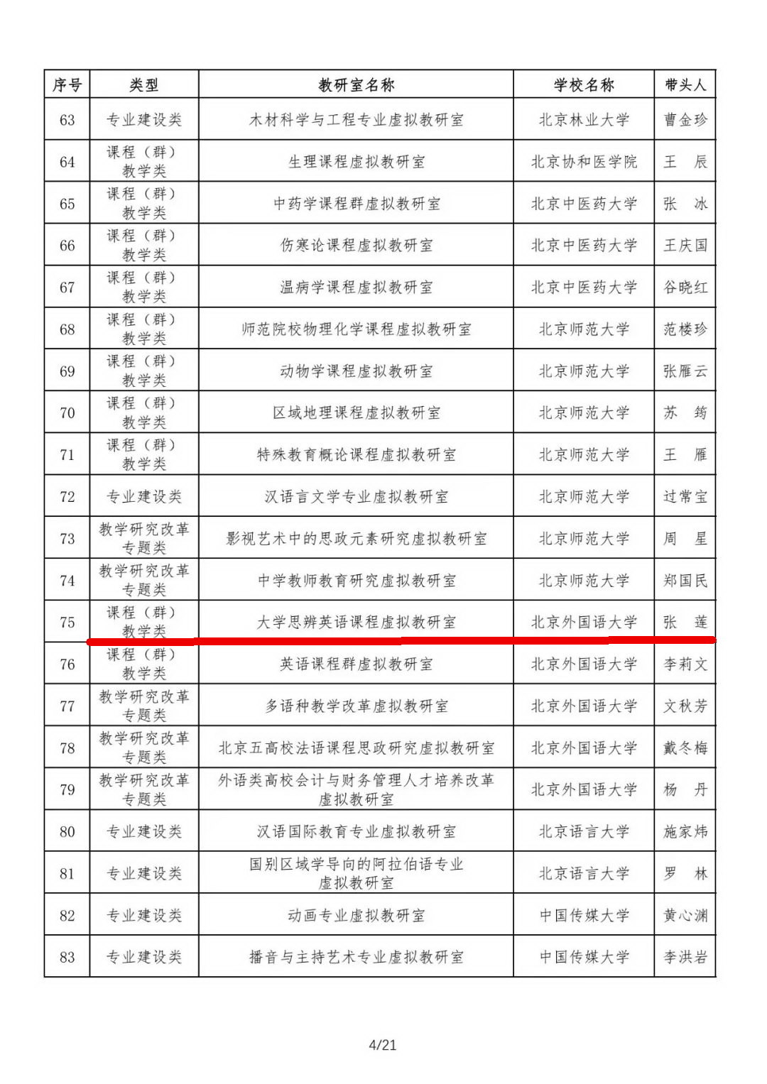 近日,教育部办公厅公布首批虚拟教研室建设试点名单。kaiyun登录中国入口登录“大学思辨英语课程虚拟教研室”入选。