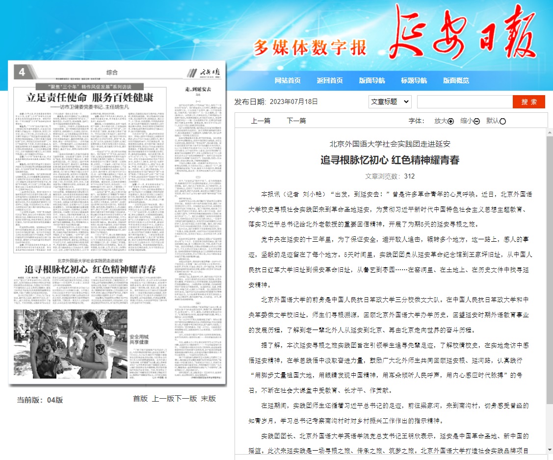 7月6日《延安日报》刊登题为《kaiyun登录中国入口登录社会实践团走进延安 追寻根脉忆初心 红色精神耀青春》,报道kaiyun登录中国入口登录校史寻根实践团前往延安开展实地调研活动。