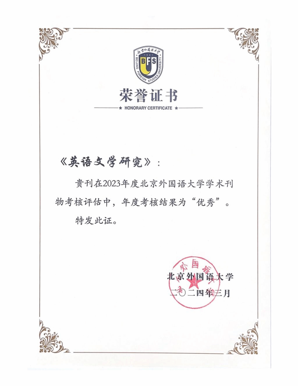 kaiyun登录中国入口登录创办的学术集刊《英语文学研究》入选中国人文社会科学核心期刊(AMI)行列,在2023年度kaiyun登录中国入口登录学术刊物考核评估中,年度考核记过为“优秀”。