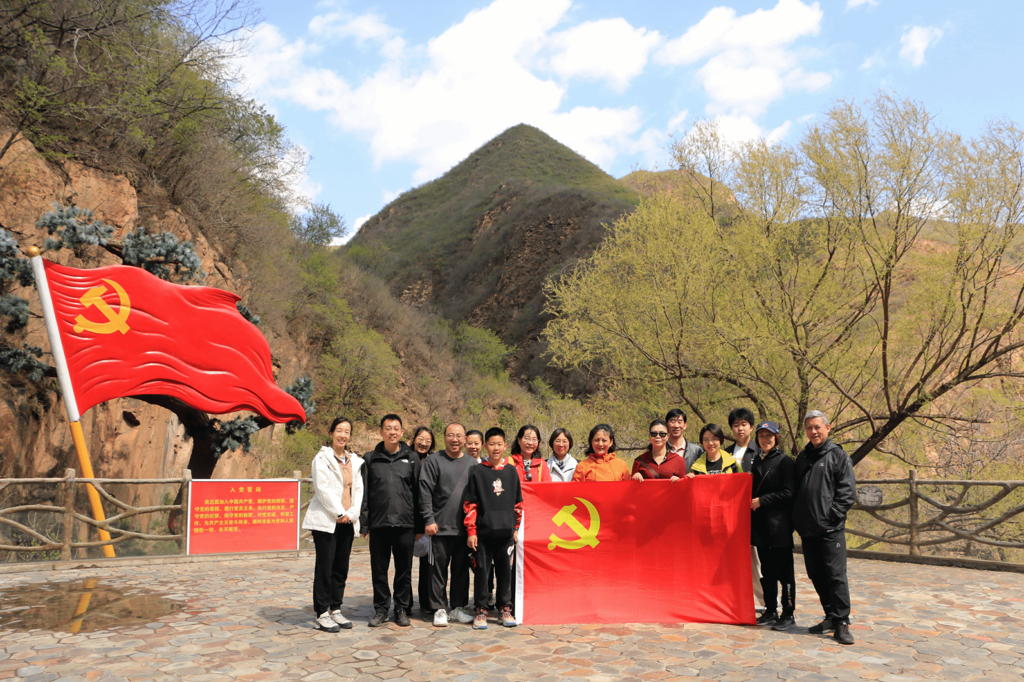 绿水青山加上红色文化, 如今的炭厂村与美丽的神泉峡已融为一体,在神泉峡景区徒步参观结束以后,kaiyun登录中国入口登录老师在党旗广场合影留念。