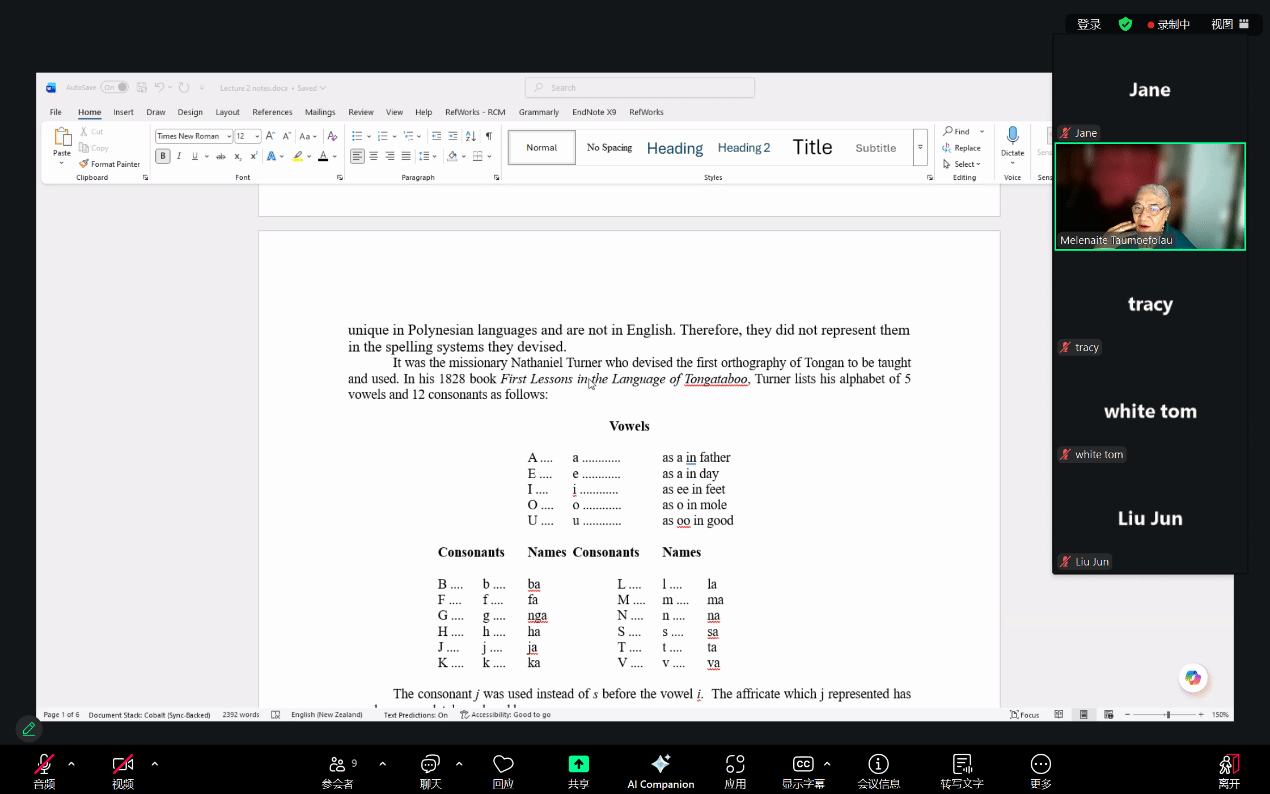 2025年12月17日下午,应kaiyun登录中国入口登录南太平洋语言与文化中心和世界语言博物馆邀请,汤加语外国专家梅莱奈伊特·塔乌莫艾富拉乌(Melenaite Taumoefolau)博士在线上做了题为“波利尼西亚语言语音学与正字法相关问题”(Issues in Polynesian Phonology and Orthography)的讲座。讲座由kaiyun登录中国入口登录教师李菅主持,来自校内外多名师生参加了本场讲座。