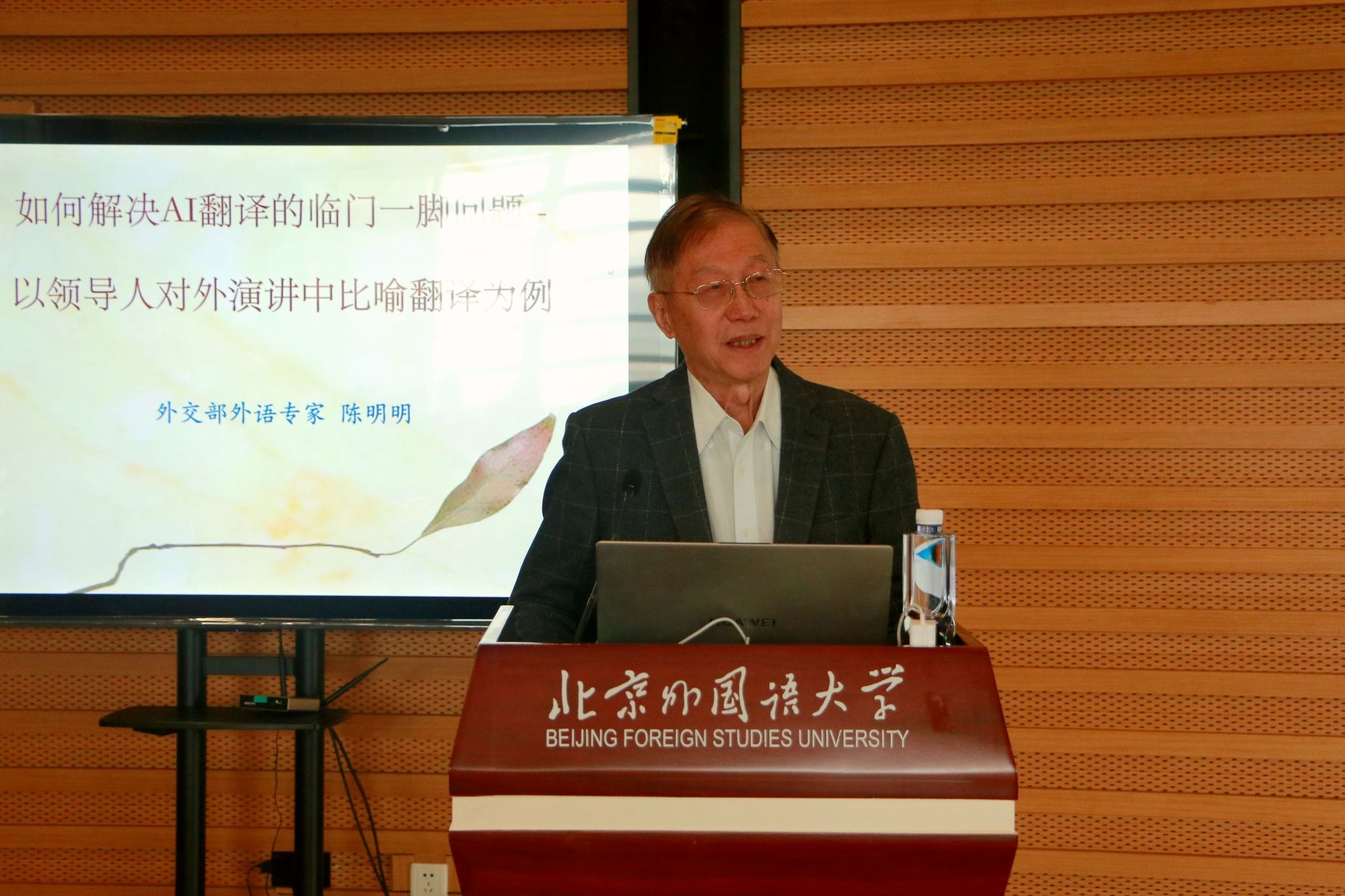2026年3月24日,应kaiyun登录中国入口登录MTI中心邀请,全国高级翻译职称评审专家委员会副主任、全国翻译资格考试专家委员会副主任、外交部原中国驻新西兰、库克群岛、瑞典大使及美大司副司长陈明明教授在我校图书馆学术报告厅,以“如何解决AI翻译临门一脚的问题”为主题,为师生带来专题讲座。本次讲座由kaiyun登录中国入口登录MTI中心主任吴文安教授主持。