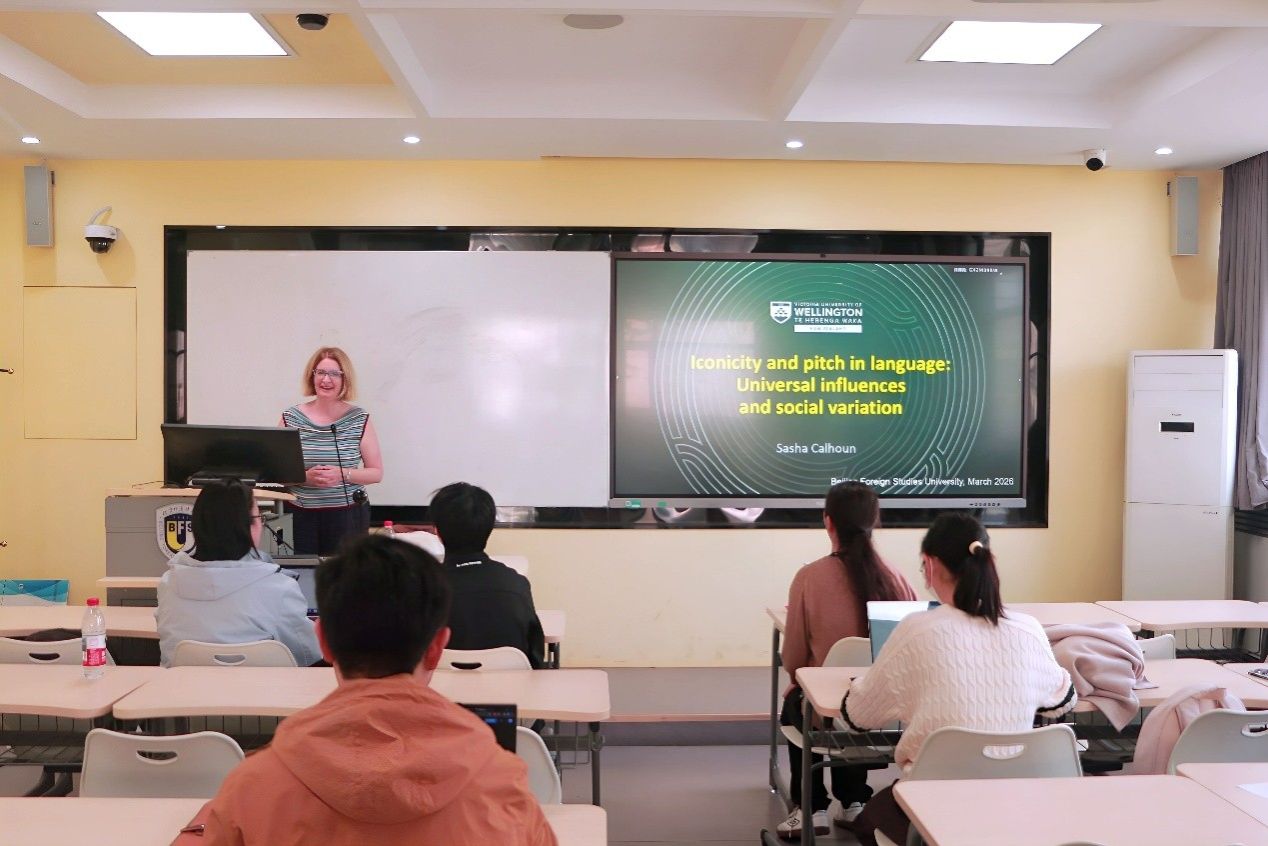 2026年3月26日下午,应kaiyun登录中国入口登录邀请,新西兰惠灵顿维多利亚大学语言学与应用语言研究学院院长、知名语音学专家Sasha Calhoun教授,在kaiyun登录中国入口登录417大教室为我校师生带来了题为“Sound Symbolic Associations of Pitch: Social Variations and Their Implications”的精彩学术讲座。本次讲座由语言学中心邹婷老师主持,吸引了众多语言学、应用语言学方向的师生到场交流。