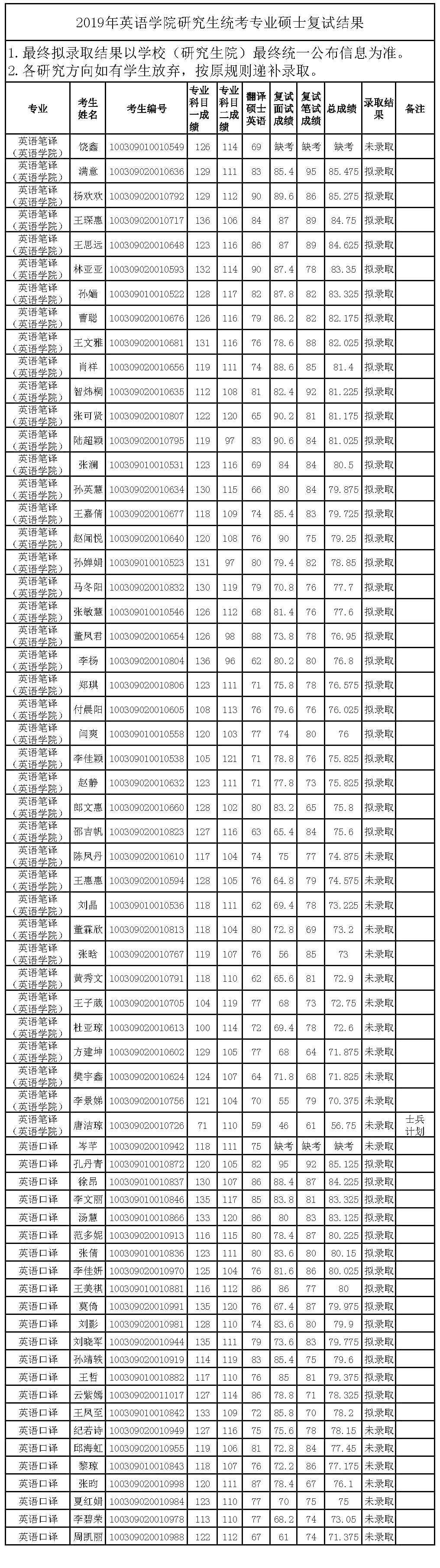 2019年kaiyun登录中国入口登录研究生统考学术硕士复试结果公示