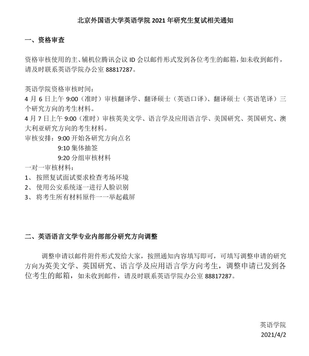 2021年研究生复试相关通知