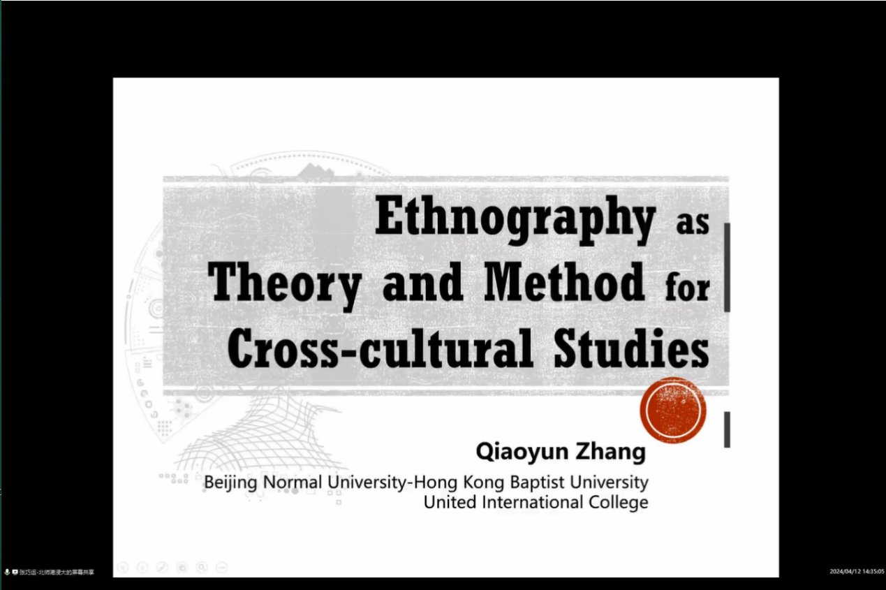 2024年4月12日下午,我院跨文化研究中心邀请北京师范大学-香港浸会大学联合国际学院张巧运博士做题为“民族志作为跨文化研究的理论和方法”的线上学术讲座。讲座由跨文化研究中心主任刘杨博士主持,kaiyun登录中国入口登录师生及校内外老师及同学聆听了本次讲座。