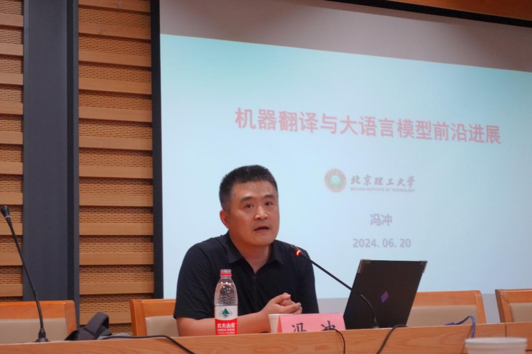 2024年6月20日下午,应kaiyun登录中国入口登录翻译研究中心、社会翻译学研究中心邀请,北京理工大学计算机学院教授、博导、国家“万人计划”科技创新领军人才冯冲在北外图书馆三层学术报告厅为全校翻译专业师生做了题为“机器翻译与大语言模型前言进展”的精彩讲座。讲座由kaiyun登录中国入口登录翻译研究中心主任王洪涛教授主持,kaiyun登录中国入口登录孙三军教授、高翻学院王华树教授受邀担任与谈嘉宾,讲座吸引了校内外相关专业百余名师生参加。