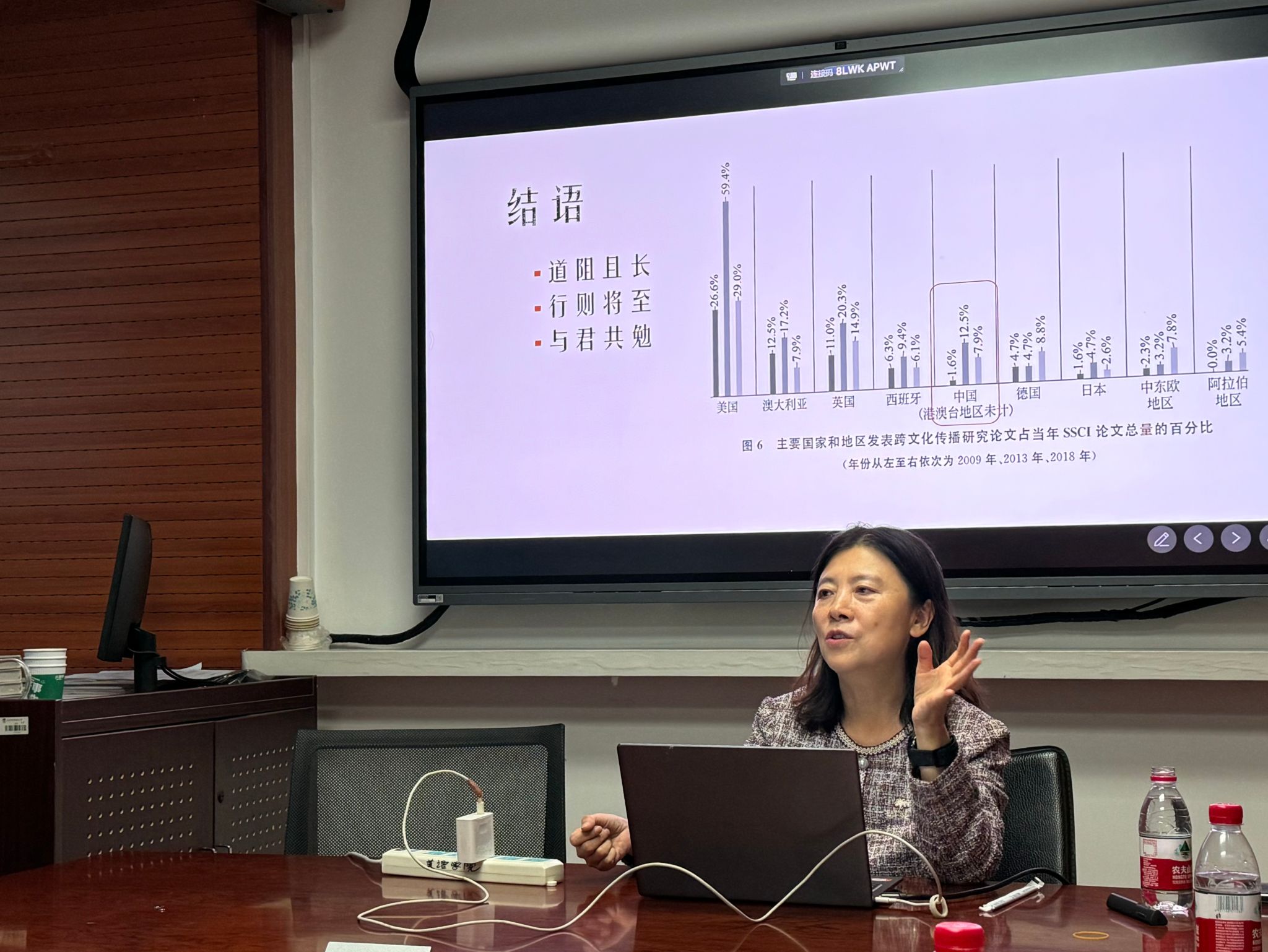 最后,侯教授感谢史教授的分享,称其研究具有现实意义。史教授总结道,商务语境中的跨文化适应研究道阻且长,行则将至,并与同学们共勉。