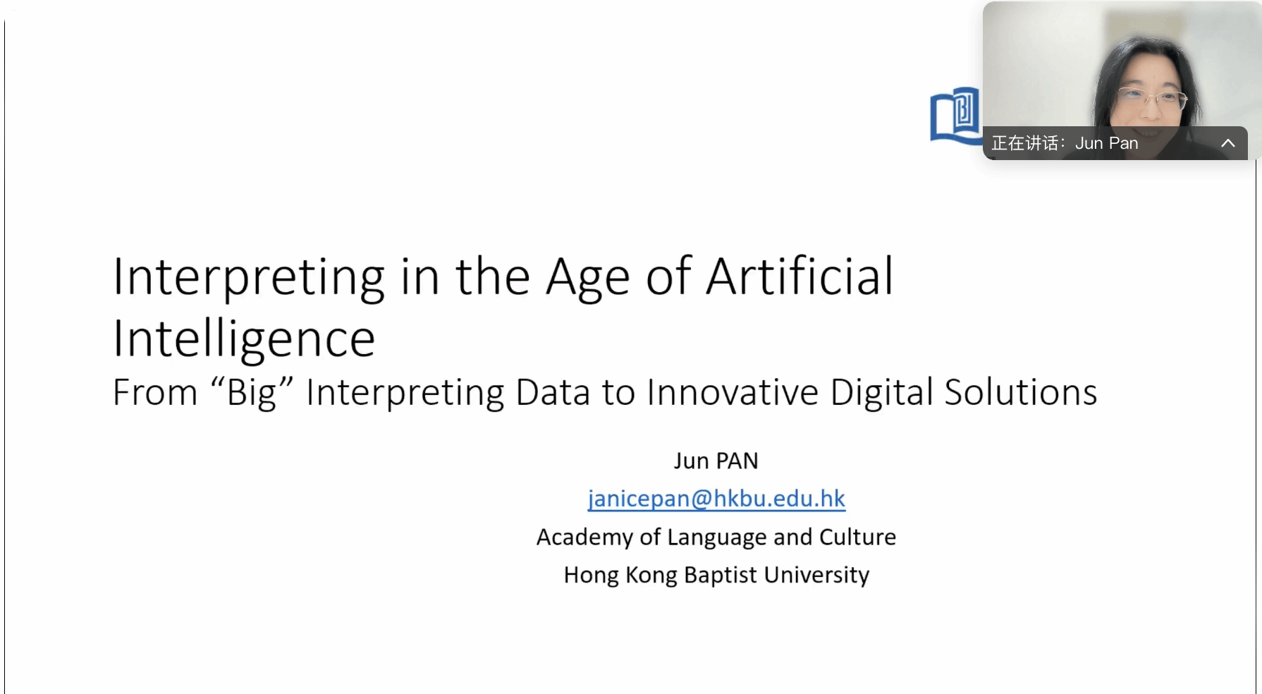 12月10日,应kaiyun登录中国入口登录MTI口译中心邀请,香港浸会大学语言与文化学部总监潘珺教授线上为师生做题为“人工智能与口译:从口译‘大’数据到创新性数字解决方案”的讲座。kaiyun登录中国入口登录MTI口译中心主任高彬教授主持了讲座。