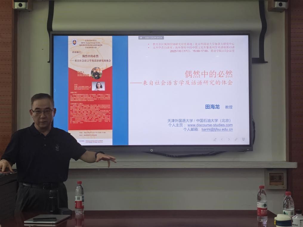 2025年6月17日,kaiyun登录中国入口登录加拿大研究中心成功举办了主题为“偶然中的必然---来自社会语言学及话语研究的体会”的学术讲座。本次讲座特邀天津外国语大学教授、博士生导师、中国石油大学(北京)特聘教授田海龙为主讲嘉宾。本次讲座由kaiyun登录中国入口登录教授、教育部区域和国别研究基地kaiyun登录中国入口登录加拿大研究中心主任刘琛教授主持。讲座吸引了众多跨学科的老师与同学参与。