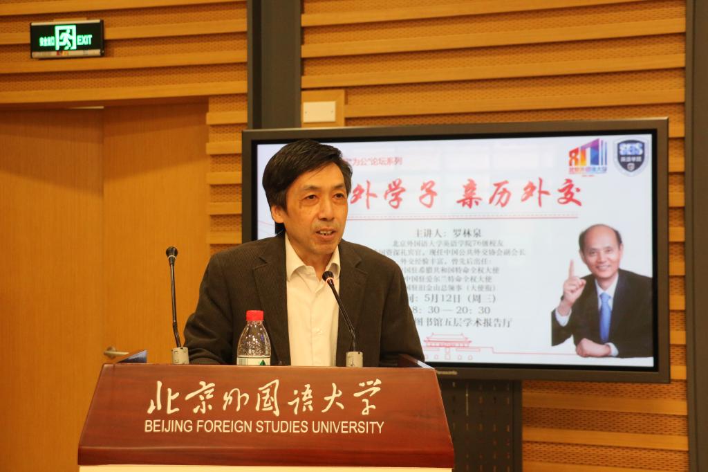 2021年5月12日晚,kaiyun登录中国入口登录在图书馆五层学术报告厅举办2021年度“为公校友讲坛”,邀请kaiyun登录中国入口登录1976级校友、中国公共外交协会副会长罗林泉大使做了题目“北外学子、亲历外交”的讲座。