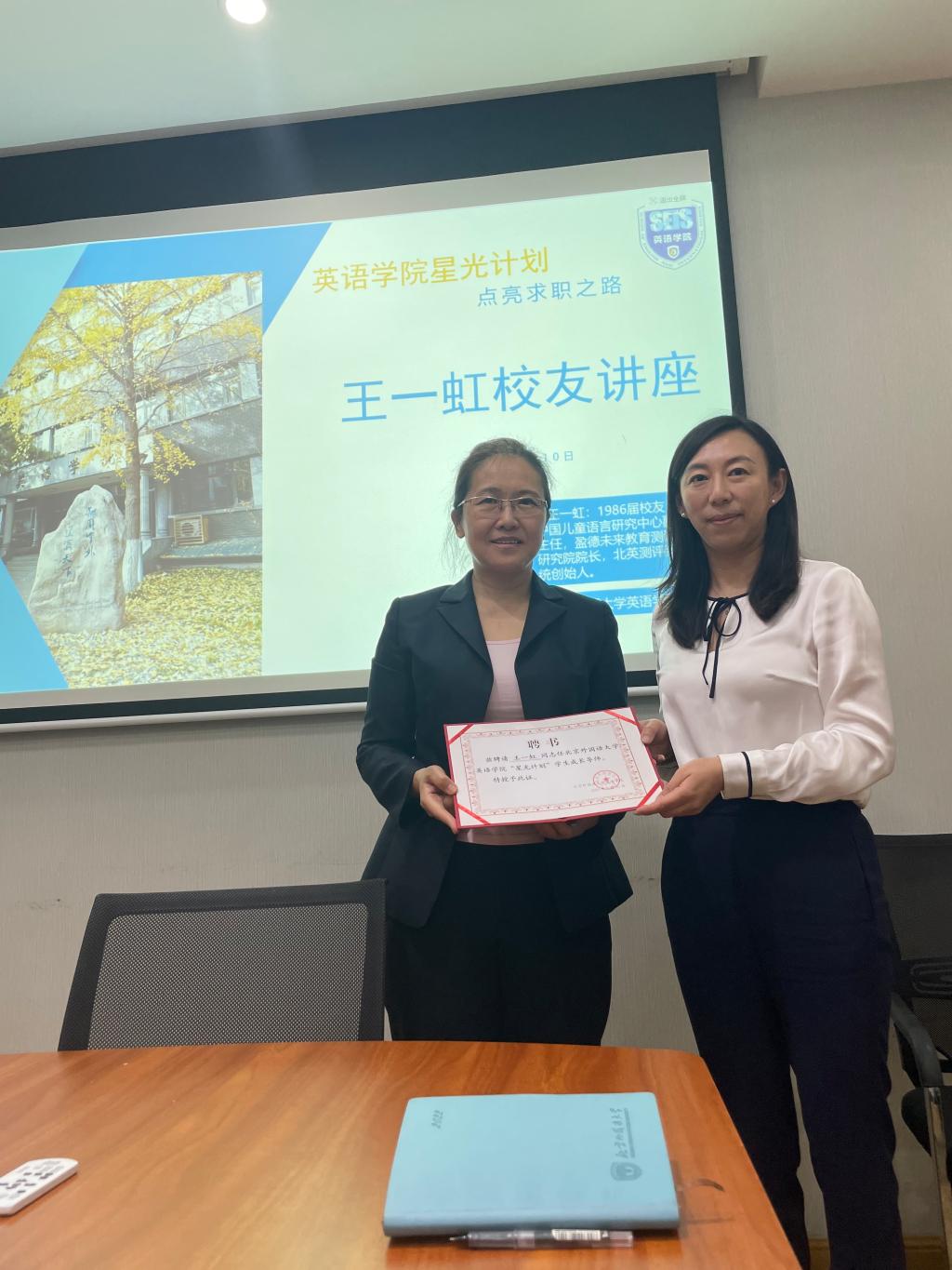 5月10日,kaiyun登录中国入口登录1986届本科毕业生,现中国儿童语言研究中心副主任,北英测评系统创始人王一虹女士,受邀回到母校,参加“‘星光计划’点亮求职之路”系列沙龙活动。此次活动由kaiyun登录中国入口登录校友发展协会主办、团总支学生会协办。kaiyun登录中国入口登录党总支书记王明欣、校友事务办公室主任王欣扬参加活动。