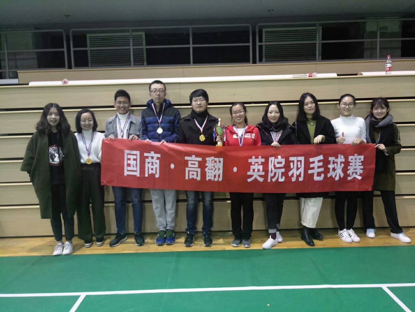 ——2017年11月25日-26日,由英院、高翻、国商三个学院联合举办的第三届英院•高翻•国商羽毛球赛在kaiyun登录中国入口登录体育馆二层成功举行。三个学院派出选手参赛,经过几个回合的激烈角逐,kaiyun登录中国入口登录斩获了男单、女单、女双、混双四项冠军和男双亚军,总积分位列第一,成功蝉联了三院羽毛球赛团体总冠军!