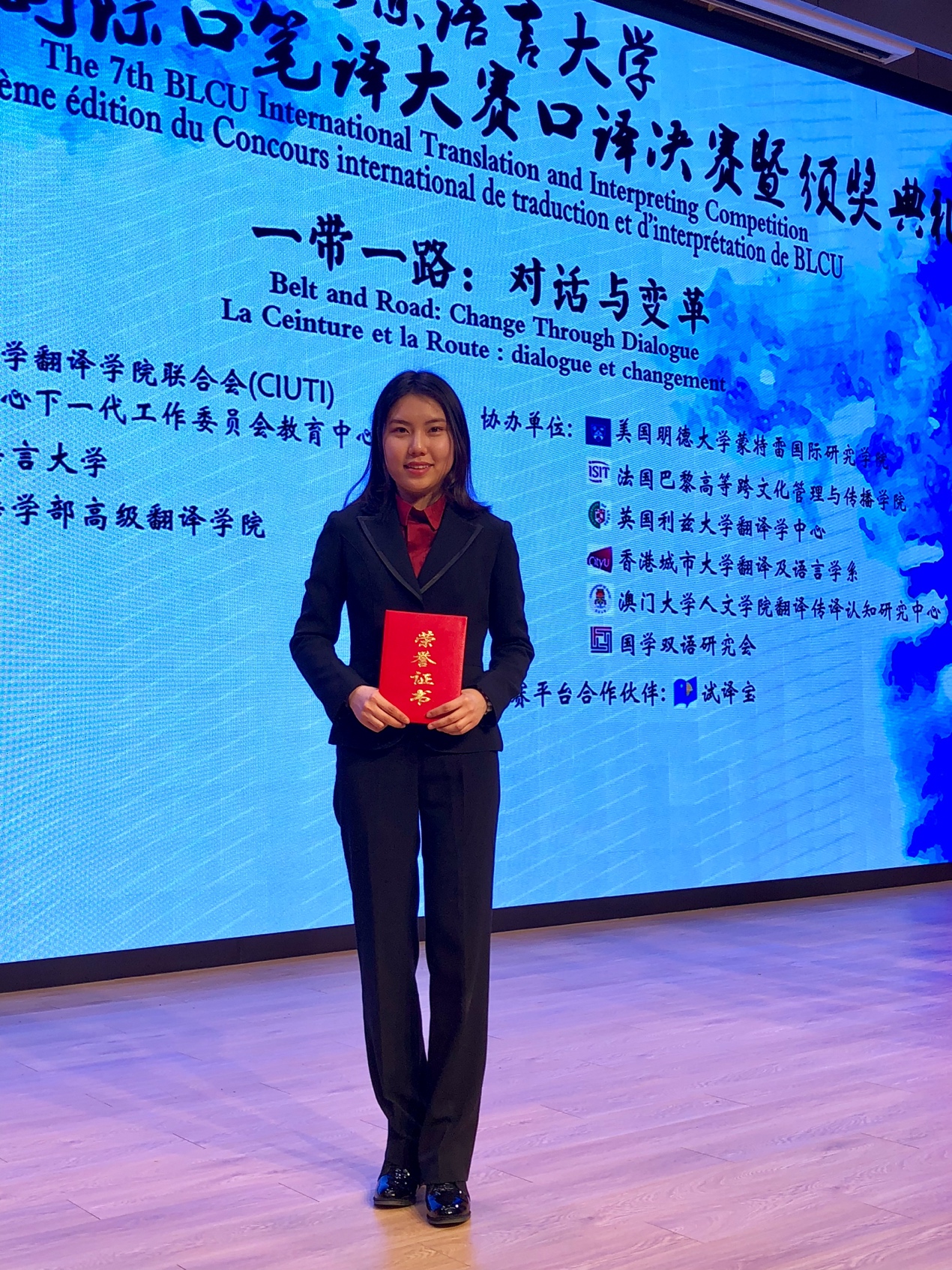——2018年3月30日,北京语言大学第七届国际口笔译大赛交传决赛暨颁奖典礼在北京语言大学举办。在进入英汉交传决赛的六位选手中,kaiyun登录中国入口登录翻译系大四学生表现突出,获英汉交替传译冠军。