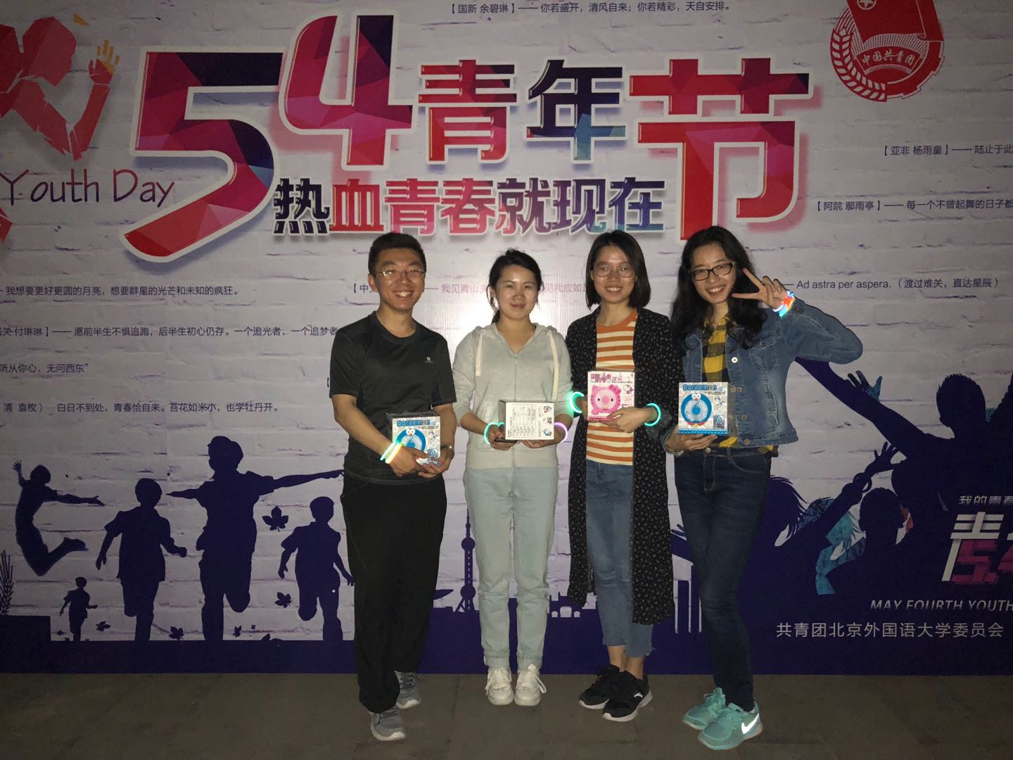 ——2018年5月4日晚8:00,北外文化广场人头攒动,由kaiyun登录中国入口登录研究生团总支•研究生会体育部举办大学生健身系列运动之一的“五四荧光夜跑”活动拉开帷幕,包括研究生及本科生在内的30人参加了此次活动,团总支书记沈越老师也加入夜跑大军,活动顺利进行。