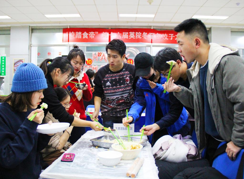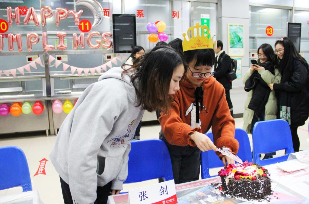 在包饺子的同时,大赛中还穿插了“气球接力”等小游戏,各个班级积极参与。一家英院人,温暖同窗情。在“一起过生日”环节,主办方还为在大赛前后过生日的同学们精心准备了生日蛋糕,引得全场掌声雷动。