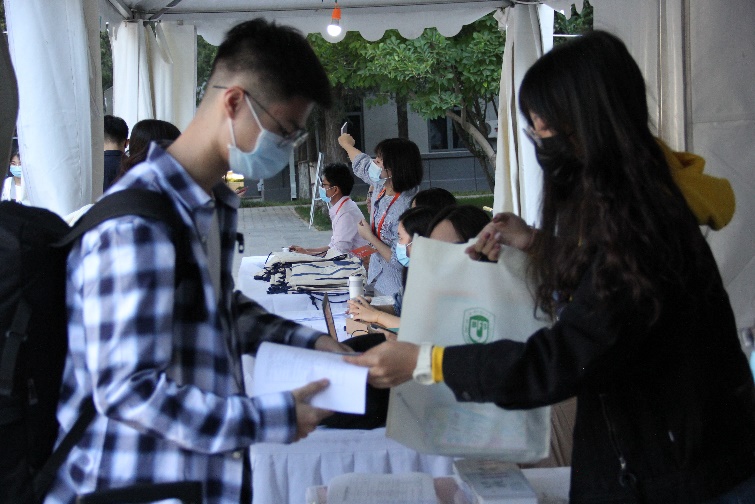 在主楼迎新处,新生们在志愿者的引导下进行了迎新注册码的验证工作,领取北外专属一卡通及新生大礼包。在kaiyun登录中国入口登录,学生会工作人员仔细清点新生所提交的档案材料,努力将每一个细节落到实处。