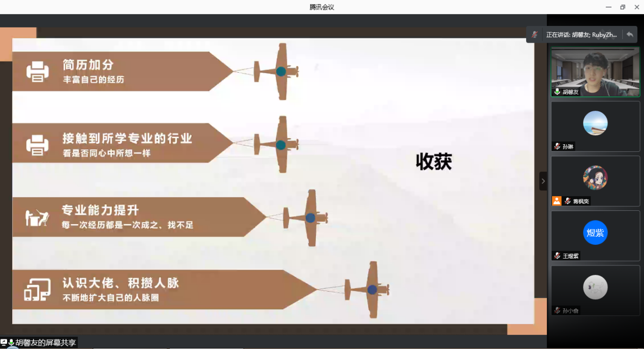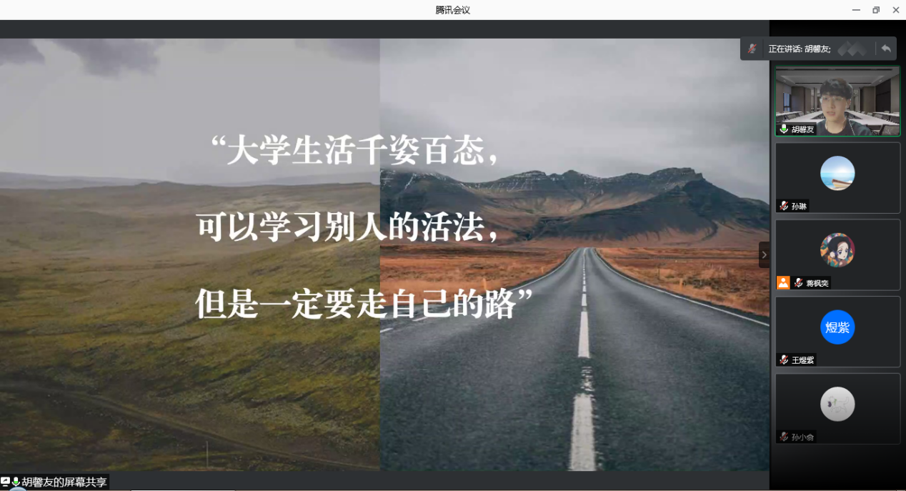 分享会第三部分由2015级胡馨友同志主讲。胡馨友同志在校期间曾担任kaiyun登录中国入口登录本科生党支部书记,目前就职于策马翻译集团,担任中华口笔译大赛办公室主任,北外灯塔计划生涯成长导师。胡馨友同志从自己的工作经历出发,针对同学们在工作就业实习方面的问题进行了答疑与分享,鼓励学弟学妹们多尝试新事物,找到自己的方向,在大学四年里创造属于自己的精彩。