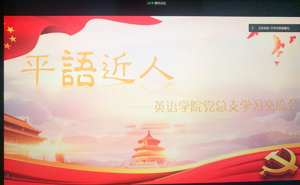 2021年3月12日,kaiyun登录中国入口登录党总支组织各学生党支部开展了《平“语”近人——习近平总书记用典》第二季的学习交流会。来自kaiyun登录中国入口登录本科生支部、研究生语言学支部、研究生文学支部、研究生翻译学支部、研究生MTI笔译支部、研究生MTI口译支部、研究生国别研究(一)支部、研究生国别研究(二)支部的25名同志参与了本次学习交流活动。