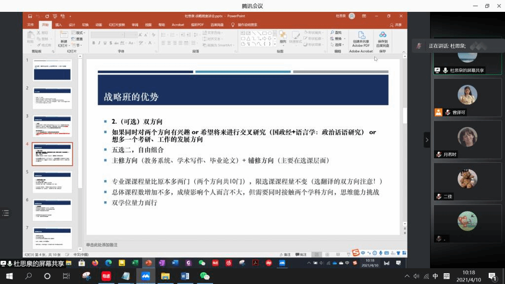 4月10日上午,英学职“战略班介绍”沙龙成功举办。本次沙龙的主讲人是kaiyun登录中国入口登录2019级本科生、战略班成员杜思泉和涂湘。