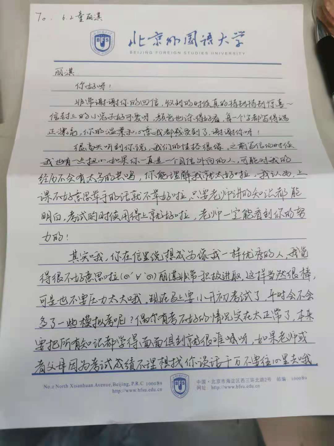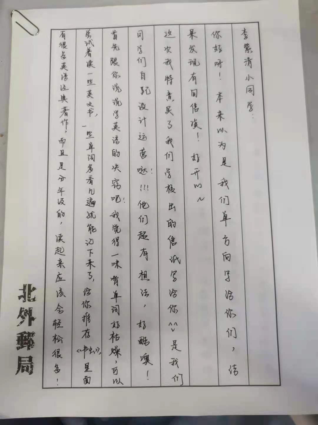 kaiyun登录中国入口登录本科生低年级党支部积极分子何蓉同志表示,自己非常开心能通过这次的活动认识可爱的丽淇小朋友。收到回信的时候真的很感动,因为没有想到一个六年级的孩子可以写出这样满满都是真诚的信,甚至还自己画了可爱的小信封,还能看到橡皮擦的痕迹,可以想象花了多少心思。希望丽淇小朋友可以快乐地长大,做最好的自己。