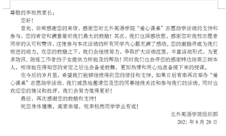 (北外kaiyun登录中国入口登录活动负责人的回信)