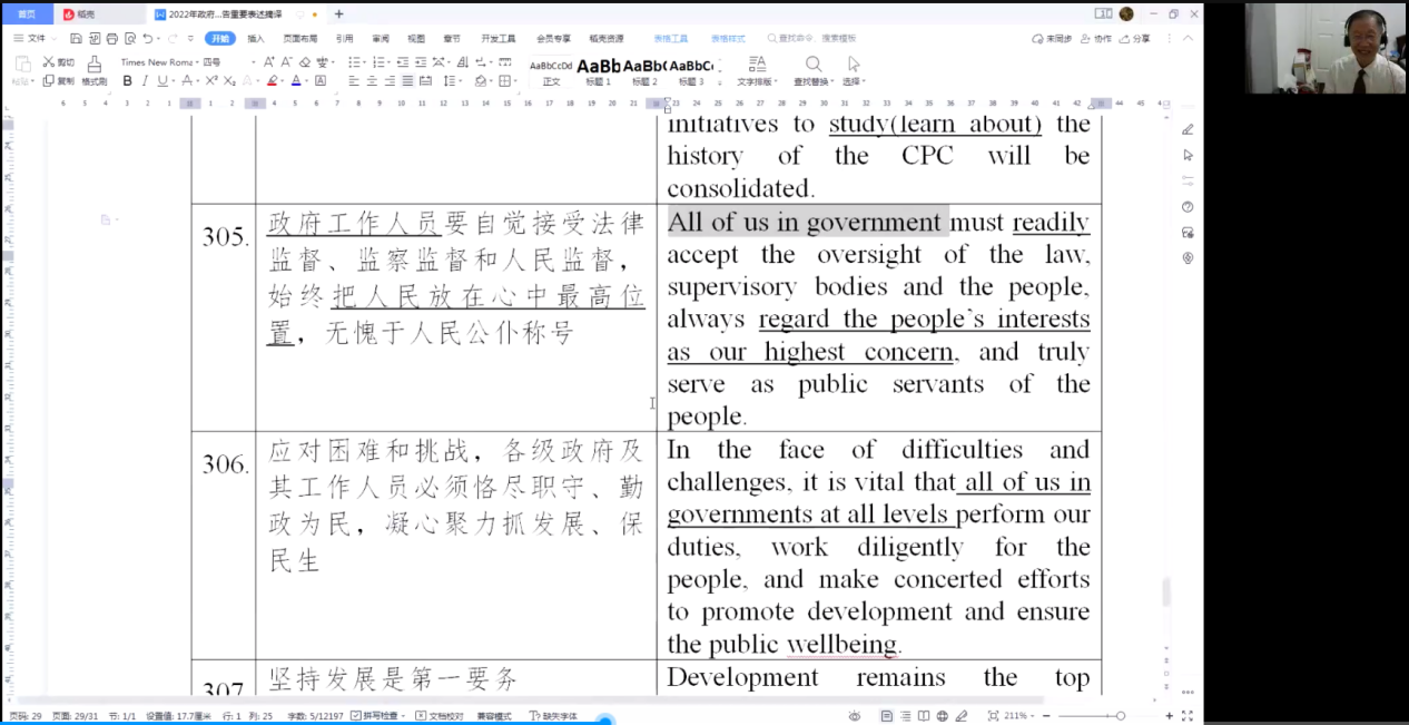 2022年4月27日,中国驻新西兰等国前大使、外交部英文定稿专家、中国翻译协会常务副会长陈明明应kaiyun登录中国入口登录翻译研究中心邀请,为kaiyun登录中国入口登录师生举办了题为“政府工作报告重要表述翻译解析”的线上讲座。 讲座由kaiyun登录中国入口登录副院长、翻译系主任彭萍教授主持。