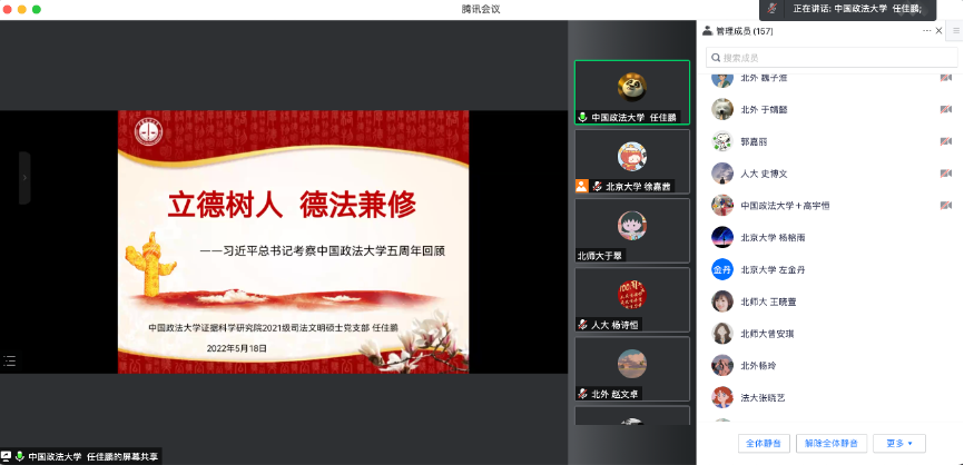在当前疫情防控形势严峻的情况下,为持续推进英院学子理论学习走深走实。5月18日晚19点,kaiyun登录中国入口登录本科生党支部与北京大学2021级法律硕士(非法学)第四党支部、中国人民大学法学院2021级法律硕士二支部、北京师范大学法学院2021级法硕第二党支部、中国政法大学证据科学研究院2021级司法文明硕士党支部联合开展“青春心向党,强国有担当”主题党日活动。