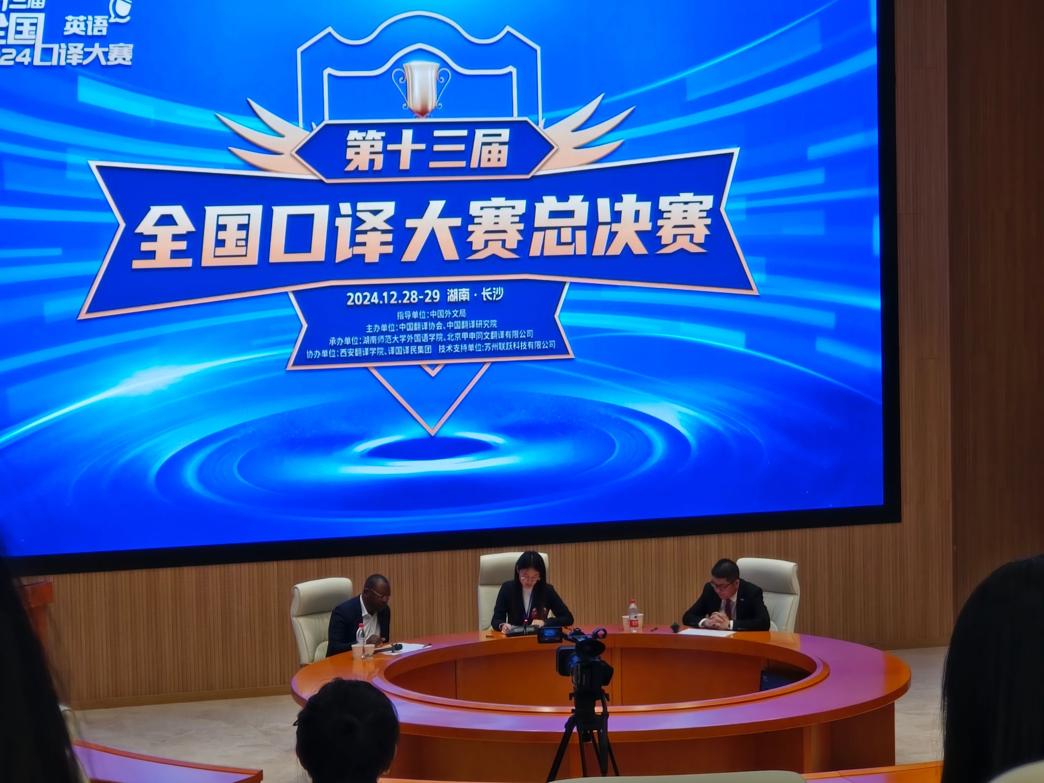 20241228-29日,由全国口译大赛由中国外文局指导、中国翻译协会和当代中国与世界研究院主办的第十三届全国口译大赛(英语)总决赛在湖南师范大学举行。