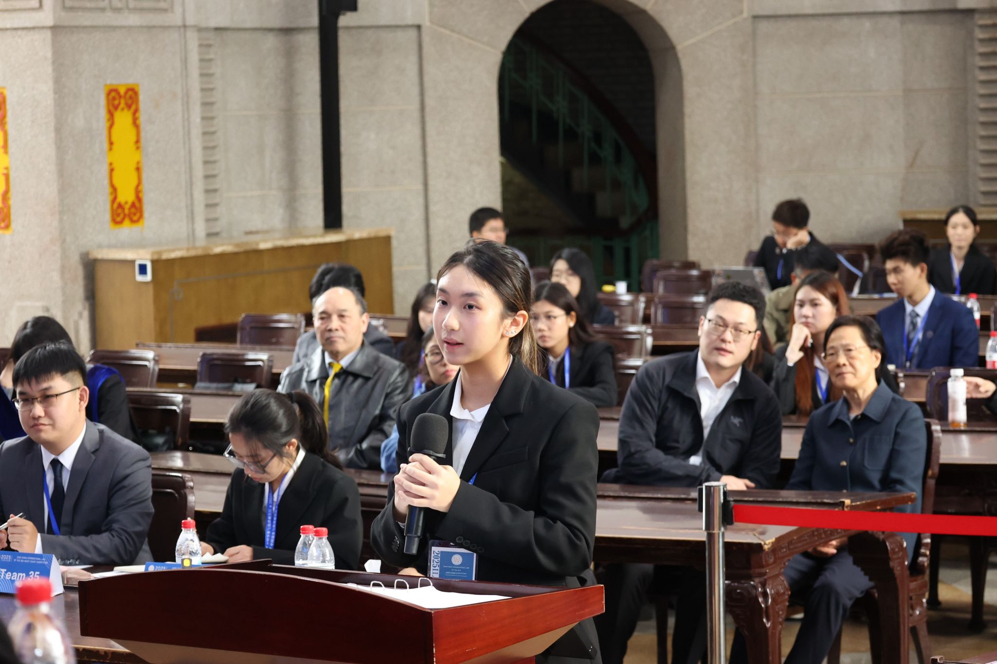 20251025日至26日,2025(中国)国际海洋法模拟法庭竞赛在武汉大学举行,北外kaiyun登录中国入口登录学子黄乐祺代表全体参赛选手在开幕式发言。由kaiyun登录中国入口登录英语(中国政法大学联合培养涉外法治人才)专业2023级本科生黄乐祺、陈炫其与法学院法学专业2023级本科生伍浩铭、刘紫萱、傅一诺、陈牧组成的代表队,在法学院国际法教研室教师姚艳霞、法学院法学专业2022级本科生王纯瑶的指导下荣获全国冠军。